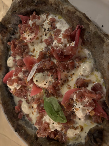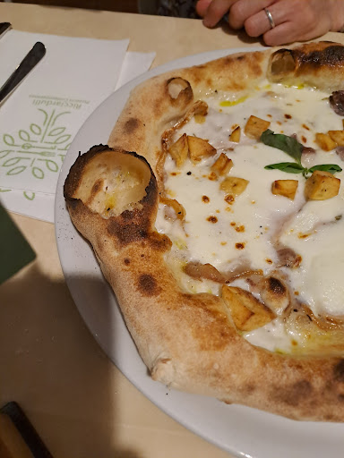 Siamo andati in questa pizzeria perché c'è ne hanno parlato bene,avevamo delle buone aspettative, e abbiamo affrontato un viaggio di 50mnt di macchina con piacere purché di trovare tante prelibatezze, e goderci una buona cena.... -Tavolo prenotato con il sito loro per il secondo turno, perché prima purtroppo impossibile. -in secondo luogo arrivati ci hanno messi fuori al locale quello coperto, Quando dentro la location alle 22:00 non tutti i posti erano pieni, ben si la metà della sala. Dopo una quindicina di minuti ci hanno fatto ordinare, e ha preso gli ordini un cameriere al quanto strano, (un po di distratto ,bho non saprei definire) Abbiamo ordinato un Tagliere di antipasti della casa con una base ciccio PER DUE, che loro chiamano base pane, e 2 pizze. -Al momento dell' arrivo dall'antipasto arriva un piccolo Tagliere che non bastava neanche per una sola persona! Deludente. E che non ne valeva il suo costo , la base ciccio o base pane ..mai arrivato, è arrivato un tagliere con un "un mezzo Panino affettato nel suo cestino" stop... abbiamo avvisato che non era l'ordine esatto per intero... il camerieri ribadiva di non aver capito bene....e vabbè dettagli,ma andando avanti con le pizze ci sono arrivate 1)completamente salata immangiabile, la 2) bruciata completamente nel fondo. Ma che dire.... era solo mangiabile per la fame e basta, per il resto non la consigliamo, e non ci torneremo mi dispiace ma non si trattano i clienti in questo modo... inoltre avere i camerieri con il fiato sul collo è una sensazione a dir poco sgradevole... anzi ogni 5 mnt venire a guardare il piatto per la fretta di cacciare le persone non fa di essi un ottimo locale,...