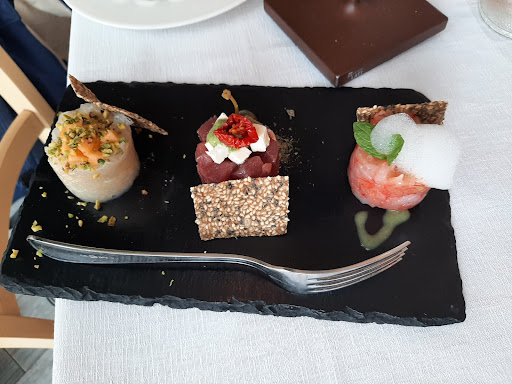 Read moreRecensire ristoranti di questo tipo non è una cosa facile perché oltre alla cucina bisogna valutare l'esperienza complessiva alla luce di un costo pasto particolarmente elevato. Si tratta di un ristorante con pescheria a vista dove è bene non andare per caso. La proposta gastronomica è ricercata e questo è il primo aspetto da non sottovalutare. In un menù dove non ci sono portate che costano meno di 18 €, a cui vanno aggiunti 3 € per il coperto e altri 3€ l'acqua, bisogna valutare attentamente quando andare e cosa prendere, perché ci sono tante strutture dove mangiar bene che si propongono in maniera piuttosto competitiva rispetto e questa. Il pescato del giorno viene proposto dai 60 ai 110 €/kg per alcune varietà di crostacei. Vi è una selezione indiscutibile della materia prima con punte di eccellenza sui crudi di mare e sulla presentazione dei piatti (eccetto a mio parere per i dolci). Poi dipende tutto dal gusto personale. Ci sono piatti che ho apprezzato molto come il tris di tartare e altri decisamente meno come il salmone selvaggio. Non perché sia fatto male, anzi, ma perché quando paghi "relativamente molto" un piatto tendi a pensare che quel piatto debba raccontare un'idea e tanto più questa idea è ricercata tanto più le aspettative sono alte. Poi al piatto mangi una materia prima buona, talvolta non ne resti colpito. Questa è un po la sensazione che mi ha lasciato questo ristorante. Bella la location. Buono il servizio (sebbene ordinario) e buona la proposta culinaria nel complesso. I servizi igienici invece li ho trovati leggermente sporchi e in un periodo come questo, anche rispetto all'immagine del posto non l'ho gradito particolarmente. Ci tornerei ? Probabilmente no. No perché il rapporto qualità prezzo è sbilanciato di un buon 15% rispetto ad altre strutture dove avrei pagato meno a parità di qualità e di servizio. Quindi non posso che dare la massima valutazione tecnica per la cucina ma se dovessi valutare l'esperienza, nel complesso avrei dato almeno 2 punti meno, per il servizio che non ha accompagnato la qualità dei piatti, che si limita a "servire" senza "raccontare" il piatto, per un rapporto qualità/prezzo un po sbilanciato e per la scarsa attenzione alla pulizia dei servizi. Sconsigliati anche i dolci, dove ribadisco la mia idea precedente, ho mangiato certamente un buon prodotto ma che non vale, per il mio personale parere, i 6€ richiesti anche perché privi di cure particolari nell'impiattanento e tendenzialmente non generosi...