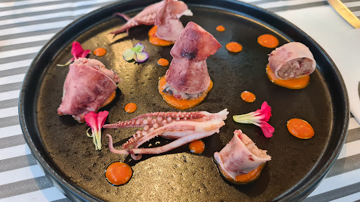 This is definitely the best restaurant in Acciaroli! Perfect service, highly professional and caring. All seafood products are extremely fresh and cooked in a distant way to underline the taste of the products and add an individual accent with either spice or presence of an extra ingrigient. What I really love in the restaurants- the dishes that you need to be a very good sheff to repeat! We were offered a fish of the day scorfano which we had one grilled and an other stewed (in aqua pazza) - big compliment to the sheff. The deserts were...