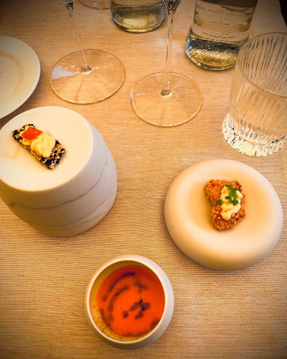 Read moreUn piccolo e delizioso tris di piccole amuse bouche per poi cominciare il percorso di mare in 7 portate,proposto a circa 70,00€. Nel mio percorso, interessante dal primo all’ultimo piatto mi sono stati serviti