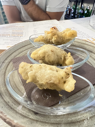 Read moreNon sono molto d'accordo con le recensioni che ho letto. Mi aspettavo un po' di più. La location è stupenda di certo, il personale molto gentile, indubbiamente, ma la qualità del cibo è discutibile. I supplì che abbiamo ordinato, non erano affatto freschi. La friggitrice di sicuro era tenuta ad una temperatura troppo alta e il prodotto, che era congelato, non si era scongelato bene, essendo rimasto poco. La mozzarella era dura e fredda. La panatura si è spezzata in men che non si dica e il riso aveva cacciato completamente l'amido rendendolo una pappetta. Abbiamo chiesto di portarlo indietro e di saltare la portata. Sono stati gentili e non ce li hanno conteggiati a fine conto. Come primo ho ordinato un'amatriciana e quella mi ha soddisfatta, nonostante la pasta fosse un po' troppo al dente. Il condimento era ottimo, comunque, ma mancava un po' di piccantezza. Avrei voluto dare 5 stelle ma avrò magari modo, in futuro, di aggiornare la...