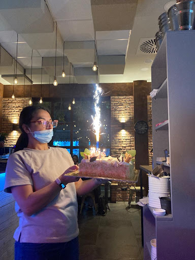 Detto ciò, un ragazzo dietro la cassa (penso sia il responsabile) si è stranito con i ragazzi che suonavano fuori al locale, alzando i toni fregandosene dei clienti che erano seduti lì… Direi pessima esperienza da non tornare e da non consigliare..