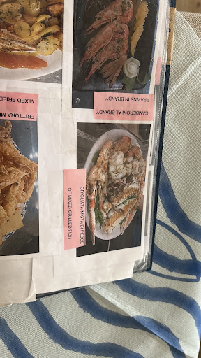 mixed feelings after visiting this restaurant. I ordered grilled seafood, as in the photo. They brought a portion 2 times smaller. when I pointed this out, after a short conversation, they added another piece of fish and shrimp. but the portion remained smaller than in the photo. the price listed was 20€, I was told I needed to pay an additional 5€ for a portion of fish, I refused to pay extra because the price in the price list and the photo did not correspond to what they brought me. I was told that in this case I could pay the amount of 20 €, as originally indicated, only after this conversation did I start eating. (by the way, one menu in English has photos and names, but no prices. The menu in Italian has names and prices, but no photos, I looked at both menus at once to be sure of the price and the photo of what will I get) In any case, they gave me less food than in the photo that I pointed at when I made the order. The restaurant is nice, sea view, very noisy, a lot of people, the place is popular. The food is ordinary, you can find better seafood. but the staff is talkative and service is fast. I left a tip for their work, but most likely I won’t come again because of the deception...