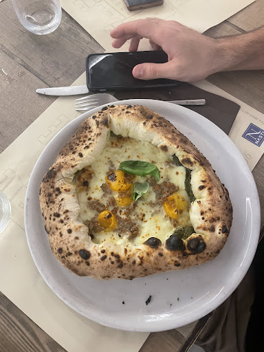 Read moreLe mie 3 stelle sono prettamente per la qualità e perché non mi va di essere cattiva. ▪️Impasto della pizza ottimo, super digeribile ✔️. ▪️Pizze rosse più buone delle bianche, quest'ultime risultano troppo asciutte. La pecca maggiore è la quantità del condimento, ok tanto sugo, ma il resto?! Sulla pizza bianca la salsiccia era immangiabile secondo me oltre che anemica, a quel punto che resta da mangiare?! Pizza bianca avendo tolto la salsiccia❌. ▪️Frittura di calamari davvero ottima ✔️🔝 ▪️ Le lacune maggiori sono negli spazi, ogni due minuti avevo qualcuno che sbatteva alla mia sedia, io stessa per arrivare al tavolo ho dovuto fare un giro immenso. Visto che il locale era strapieno, forse questo aspetto non crea disturbo a chiunque, a me terribilmente. Aria irrespirabile, caldo assurdo, consiglio di aprire un minimo le finestre. ❌ ▪️ I commensali vanno serviti insieme, ci si organizza tra cucina e pizzeria ma questa è la regola. Poi, i clienti vanno seguiti per vedere quando fare uscire la seconda portata e qui ritorniamo al fatto che ci sono troppi coperti e poco personale. Tempi biblici di attesa per patatine fritte, una frittura che doveva uscire come secondo piatto. C'era chi aveva preso già il caffè al tavolo e chi aspettava la frittura 😏❌ ▪️ Servizio pessimo, salvo solo un ragazzo che seppur veniva chiamato da ogni lato è stato gentile e sorrideva seppur ci sarebbe stato da impazzire al posto suo. Il titolare (suppongo sia lui) quando deve riprendere un cameriere dovrebbe farlo in sede privata. Ho visto personale sbattere e buttare forchette nei cassetti, fanno rumore ed io ero lì vicino e il tutto era fastidioso, borbottavano e sbuffavano. Troppe pecche, in base al mio scritto il voto sarebbe dovuto essere 1,ma spero che la mia recensione sia costruttiva e porti a dei...