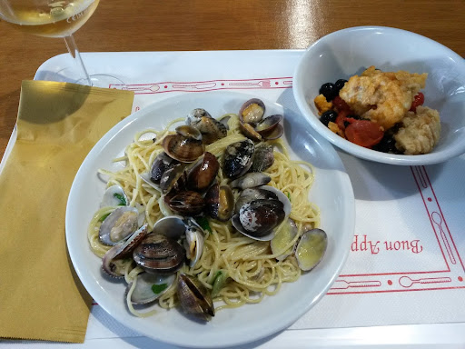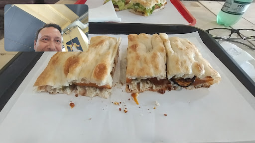 Luogo accogliente, diviso in due strutture, il panificio vero e proprio, con vendita diretta al pubblico, e tavolini per le consumazioni, sia al chiuso che a l'aperto, ed il ristorante tavola calda, anch'esso con tavoli sia al chiuso che all'aperto. Il punto forte sicuramente sono la pizza ed il pane veramente buoni, leggeri e fatti bene, che valgono il prezzo pagato. Si può pagare in contanti e con carte, si accettano ordinazioni. Nel ristorante a fianco, tra loro comunicanti mediante porte interne si svolge anche animazione musicale con tema le canzoni di Celentano, ma solo la sera. Ampio parcheggio vi e l'accesso per la...