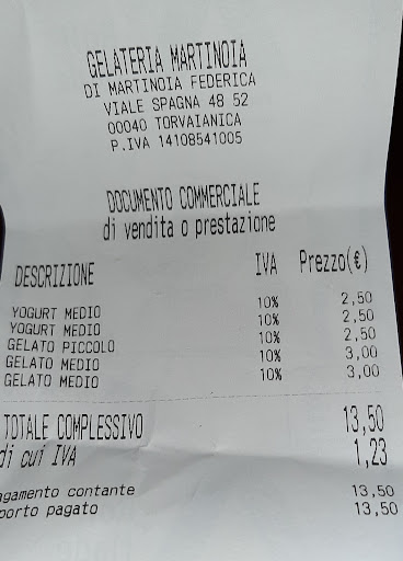 Colazione allo storico negozio che dal 1960 addolcisce villeggianti e locali a Torvaianica, in alto si staglia il "bombardiere" che anni fa divertiva il pubblico arrivando dalle cucine per fare cascare le bombe calde sul bancone. Un cappuccino e un cornetto 2,50 euro, prezzo più alto dei bar vicini (circa 2,20) anche qui ha preso piede la consuetudine di diversificare i prezzi a seconda del tipo di cornetto, cosa che a Roma si incontra difficilmente. Chiesto un cappuccino con poca schiuma e cacao, curiosamente la tazza era poco più della metà, probabilmente il "pieno" viene dato dalla schiuma che non c'era. Chiesto un bicchiere d'acqua, a tutti gli avventori viene dato un bicchierino formato shottino, comunque di acqua minerale e non di rubinetto. Qualitativamente il cappuccino era ben fatto, sapore equilibrato, cacao non invadente né aspro. Buono anche il cornetto con crema. Ingresso con piccolo rialzo che può creare difficoltà a disabili...