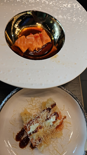 In conclusione sicuramente si va sul sicuro con la qualità del cibo e se ricercate un ambiente elegante e carino dove trascorrere una piacevole serata questo è sicuramente il posto giusto. A mio avviso si potrebbe semplificare il servizio rimuovendo le troppe figure da "ristorante stellato" e adattarsi più alla formula offerta andando ad incidere anche sul prezzo finale che è un pelo sopra la media. Spero con il tempo di poter dare 5 stelle come ho fatto con la sorella...