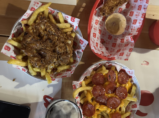 Il vero protagonista, però, è il cibo. Gli smash burger sono qualcosa di spettacolare, con carne succulenta e saporita, che si scioglie in bocca. Tra i panini, l'Extreme è un must, una combinazione di sapori decisa e avvolgente che conquista al primo morso e che ti dà la possibilità di provare sia il loro hamburger e il loro favoloso pulled pork. Se siete amanti della pizza, il panino Pepperoni, ispirato alla famosa pizza americana, è un’ottima scelta: saporito, speziato e incredibilmente gustoso.
