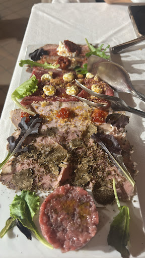 Read moreSono andato a pranzo di domenica con la mia famiglia composta da 6 persone, tralasciando l'ambiente che non mi permetto di giudicare perché i gusti sono tutti opinabili, credo che un ristorante che si presenta con un menù di un evento futuro, su ogni tavolo alla modica cifra di 180 euro a coperto ci si aspetta almeno che le regole base del galateo vengano rispettate. Entro nello specifico, una volta mangiato l'antipasto,aspettavamo circa un'ora per l'arrivo del primo piatto, passata quest'ora arrivavano solo 2 pappardelle al maialino nero e porcini, mentre gli altri 4 aspettavamo, finita la pietanza i primi 2, arrivava un piatto di ziti alla genovese e gli altri tre ancora ad aspettare, successivamente arrivava il primo al ragù (con ancora lo stuzzicadenti a malapena visibile all'interno della braciola) dopo che quest'ultimo finiva la pietanza dopo un ulteriore attesa di altri 10 minuti arrivavano le pappardelle al tartufo per gli ultimi 2 commensali. Finito di pranzare tutti si chiedeva spiegazioni del perché non avessimo mangiato tutti insieme, e la cameriera con tono alterato ci "insegnava" che essendo 4 tipi di pasta diversi e con cotture diverse il cuoco doveva "per forza" farli uscire con orari diversi, quindi la domanda sorge spontanea "se non si è capaci di organizzarsi in modo tale da permettere di essere precisi perché mettere più pietanze all'interno del menù? E soprattutto perché arrabbiarsi con la clientela che chiede spiegazioni anziché scusarsi?" È inutile dire che per quanto riguarda il servizio lo sconsiglio e quindi anche il cibo seppur buono è passato in...