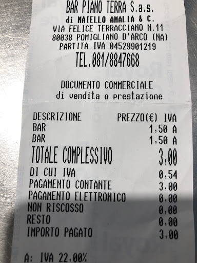 Read moreIl mio bar di fiducia a Pomigliano! Il proprietario( Sabatino) è una bravissima persona ☺️ il barista ( Luigi ) idem...la barista ( sorella di Sabatino ) bravissima e gentile anche lei come anche l’altra barista (di cui non ricordo il nome )...insomma persone umili,buone e allo stesso tempo professionali! Lo consiglio!!! Sia per la colazione che per gli aperitivi...ahhh,questo bar trasmette le partite di calcio a chi può...