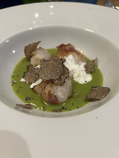 The scallops with pea purée and summer truffle was really soso. Maybe I have high standard for seared scallops , it was cold in the middle, they didn’t defrost the scallops completely and they were tasteless. ( not naturally sweet at all) Summer truffles were tasteless as well … Though the pea sauce is really nice.