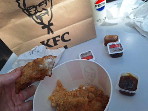 Chicken is super fresh and it is definitely different than the KFC in the USA its has a better taste and is not greasy . The mashed potatoes were not filled in the container they were not my favorite . It did not have any brown gravy which i love that with the mashed potatoes in the USA . We waited a long time for our order to go maybe 30 minutes but I have to say it was worth the wait. This place is forever busy so be prepared to wait for your food . I been here about 3 x in the past couple of years and it is always busy each time I came to order food or past by it . I really enjoyed the corn on the cob it had no butter and was perfectly cooked and naturally sweet . Everything was in the bag to go so the workers on on top of everything here. A+ if you plan on eating here be prepared to look for a table ahead of getting your food its...