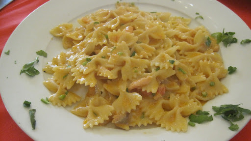 My date and I both had the bowe-tie pasta with salmon and it was really quite good (I think they could have mentioned however that it was prepared with onions, which is unusal for the dish) and that it didn't have panna (which the receipe usually calls for). The wine I ordered was horrendous, and I don't think i had more than three sips throughout the course of my meal.