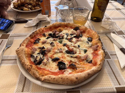 While you are passing on the street the delicious smell of the food which is being cooked outside will lure you in, we had a pizza and a chicken , both very amazing quality and taste, we also had the homemade wine from the owner which was absolutely delicious, perfect with any dish, after we ate the owner offered us his homemade meloncello which was by far the best we had in our stay in Italy, the owner was very kind and the staff very hard working. Had a homely feeling . 10/10...