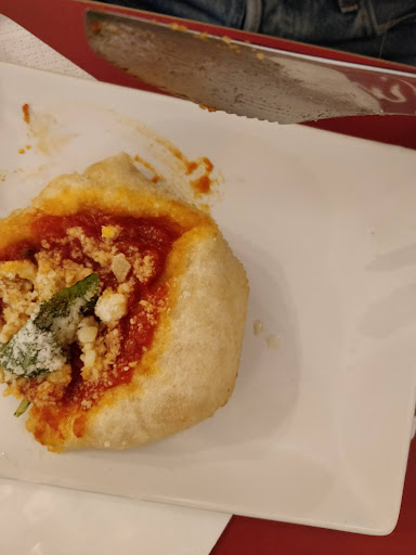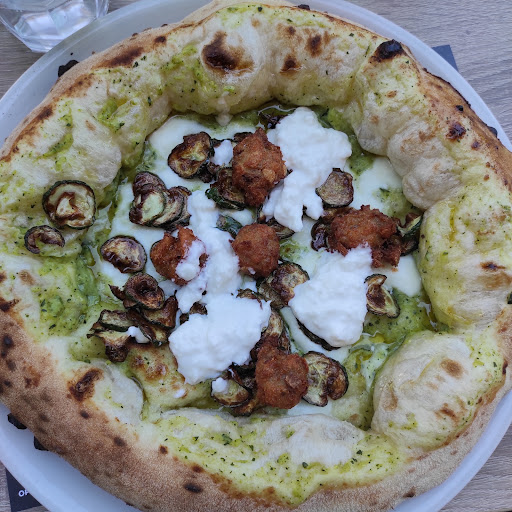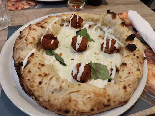 Essendo grandi amanti della pizza non potevamo fermarci qui, e direi che il posto ha più che soddisfatto le nostre aspettative, anche se qualche difetto è presente. Allora, iniziamo dicendo che la pizza è fantastica, l'impasto è preparato con cura e passione ed è cotto egregiamente, gli ingredienti sono perfetti e hanno molto sapore. Il cornicione è stata la parte più interessante, era bello grande e abbastanza croccante, aveva una consistenza un po' gommosa e morbida, dandogli un sapore indescrivibile. Il personale è stato gentilissimo e la pizza è arrivata in circa 5/6 minuti dall'ordinazione. Abbiamo assaggiato 3 pizze, che sono anche quelle che vi consiglio: Margherita con mozzarella di bufala, Napolitudine e Abbraccio e Mamma (con il cornicione ripieno). I prezzi delle pizze sono molto onesti e siamo rimasti molto soddisfatti. Adesso però si aggiunge un fatto, se prendete la pizza si aggiungono di conseguenza le bevande, che possono rivelarsi molto pericolose, infatti una semplice coca-cola 30cl è venuta a costare 2.50€ aggiungendo anche una birra da 6€... E fanno letteralmente schizzare il prezzo alle stelle. Il locale è carino, è presente l'aria condizionata e si sta belli comodi, ma per quanto riguarda gli abbellimenti sono rimasto un po' deluso, infatti ci sono angolini e piccoli pezzi di muro decorati benissimo, ma poi ti ritrovi il 60% dei muri praticamente vuoto... Questo a dimostrazione del fatto che gli abbellimenti non sono omogenei. Ma tutto sommato sono molto carini. Purtroppo la wifi del locale non funziona per nulla, e i dati mobili se ne vanno in mezzo ai campi di pecore, rendendo molto difficili i pagamenti con il bancomat, e non siamo stati gli unici ad avere problemi... Vi consiglio di portare qualche soldo spiccio altrimenti vi potreste ritrovare in una situazione critica. Questo è tutto, e dopo 4 giorni di visite un po' per tutto Napoli posso confermare che questa è la ⭐ MIGLIORIE ⭐ anche se per arrivare alle 5 stelle bisogna migliorare le cose...