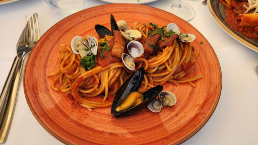 Worst food and a ripoff staff . I wouldn't give them one star, but unfortunately Google doesn't provide for that kinda rating. Here are the main issues Food was horrible across 6 different orders. All dishes were of poor quality. Ragu had pork meat Spaghetti with seafood had the worst quality seafood Tuna salad , had canned tuna Got double charged for some dishes Staff / servers impose a 10% service fee on top of the 3 EUR service fee ( coperto). None of the staff speaks ( or doesn't want to ) any other language ... Ripoff place! Stay away from this...