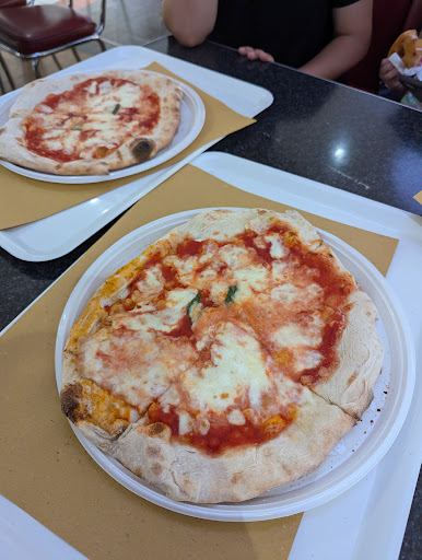 Dopo aver ordinato la pizza e come scritto sull'cartellone esposto all'esterno mezzo metro di pizza e ½ litro di coca cola ci viene consegnata in prima parte una coca cola che non era 500ml ma 450ml ma non è questo il problema, seduti al tavolo in mezzo a molta gente che andava avanti e indietro decidiamo allora di alzarci e metterci vicino al muro dove c'erano 4 posti ma comunque era più tranquillo e noi avevamo pagato, dei soggetti ci dicono di alzarci e la cameriera dice che dobbiamo alzarci quasi obbligatoriamente in modo molto sprucido allora a quel punto dopo aver aspettato 45 minuti ci alziamo e diciamo allora la facciamo da asporto la pizza in tutto ciò il signore dietro alla cassa dice meravigliato che quella pizza era nostra indicando la vetrina dov'era stata la pizza 20 minuti che ovviamente si era fatta molto fredda e gommosa insomma immaginabile se volete la professionalità è la comodità questo posto molto caotico...