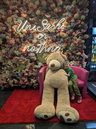 Read moreFood was absolutely delicious. Everything brought out was top notch, sushi to noodles to gyoza to green tea. Loved it all. Great service and food was QUICK. Kind employees!! Provided a well needed break from pasta and pizza ...we ordered a feast and prices were 100% reasonable and surprised us, as the food was such good quality. Place and ambience is immaculate and we really enjoyed how pretty it was. Of course my kids loved the teddy. Highly recommend!!! We spoke English and our waitress was so kind and from Sri Lanka and helped us in English. She was very sweet!! Had no problems as the menu is on a tablet at the table. Everyone...