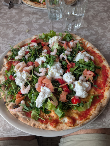 Prima volta, la pizza ha un impasto particolare non saprei descriverlo esattamente se non che la consistenza è più simile ad un impasto del pane piuttosto che quello della pizza sia alla base che al cornicione che è mantenuto di dimensioni contenute. È ben condita qualsiasi gusto si scelga e questo è un valore aggiunto per me. Ho gustato una delle migliori pizza con i calamari ( fritti ). I calamari non sovrastavano il sapore del resto non risultando troppo salati come spesso accade. Da sottolineare che la frittura è davvero ben fatta risultando saporita ma leggera ed asciutta. Anche la pizza bufala con salame dolce risulta essere una buona scelta anche se il salame ovviamente da un tocco decisamente più deciso alla pizza. Dolci degni di nota, ottimo tiramisù. L’ambiente è quello classico delle pizzerie “rustiche” che badano alla sostanza più che all’estetica. La veranda esterna da un tocco più particolare ed “intimo”. Il servizio è rapido e c’è sempre in sala un addetto in grado di accogliere ogni richiesta in tempi brevissimi. Prezzi...