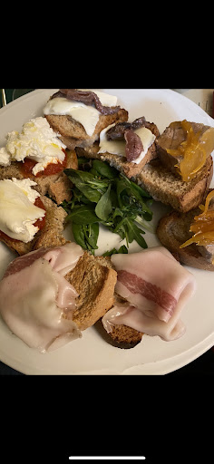 Parliamo della cena in sé - “antipastone di noialtri” veramente favoloso, dagli affettati, alla pappa al pomodoro, al paté, e finalmente ai formaggi e confettura. Veramente spettacolare. Bistecca alla Fiorentina di apparenza eccezionale, ottima porzione - ma purtroppo leggermente troppo cruda a parere del mio tavolo, mancava veramente 1 minuto in più, e ciò ha un pochino rovinato cos’era una carne di eccezionale qualità. Peccato, anche perché dalla recensioni e le foto viste qui su Google, avevo un’aspettativa veramente alta. Contorni favolosi, mi è piaciuta l’idea del “icche c’ha offerto il raccolto odierno” e devo dire patate veramente buone. Dolce al pan di Spagna buono, peccato non era disponibile la panna cotta.