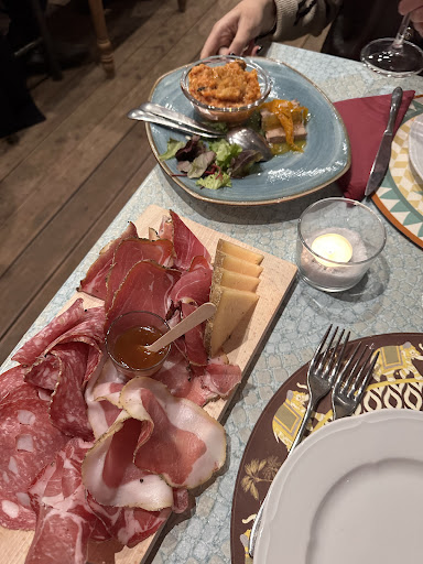 Atmosfera molto calda, particolarmente nelle serate d’inverno - posto disponibili dentro e in una veranda riscaldata all’esterno, la consiglio altamente. Ottimo servizio, camerieri relativamente veloci. Prezzo senza vino €50 a testa, mi sembra un po’ sopra la media della zona ma tuttavia penso sia un buon compromesso, l’unica cosa da notare avevamo preso solo 1 dolce, per questo mi sembrava un po’ tantino.