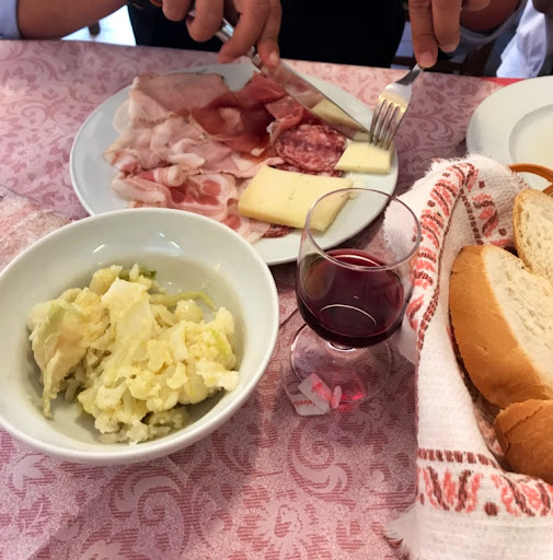 Premetto: sicuramente siamo capitati nel posto sbagliato la sera sbagliata, ma giudicate voi. Nel bar attiguo un tavolo di gente chiassosa che accompagna bicchieri di vino al turpiloquio. Nella sala da pranzo (anonima, povera...) noi e un tavolo di tedeschi. Non c'è menù. La cameriera molto gentilmente ci illustra i primi, 4 o 5 tra cui degli "elaboratissimi" spaghetti aglio olio e peperoncino o al pomodoro. 3 tipi di secondo: involtini, braciola o bistecca. Scegliamo: penne panna zucchine e speck, ravioli al burro, involtini, un'insalata mista e dei fagiolini (lessi). In 5 minuti eravamo serviti. Le penne scotte e appiccicose nel loro sugo, ravioli asciutti, involtini (2) decenti, insalata ok, fagiolini stracotti e di un colore verde militare. Grazie microonde! Mangiato bene? NO. Speso poco, sì, ma vorrei...