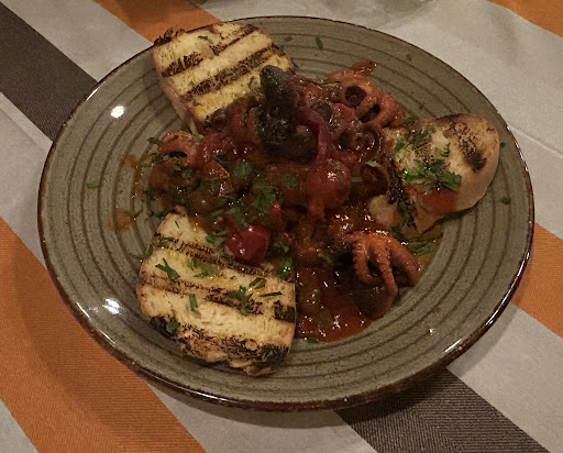 Siamo stati i primi clienti della serata e il servizio che abbiamo ricevuto è stato molto rapido e cordiale, il che ha reso la serata ancora più piacevole. Ci sono tantissime opzioni di deliziosi piatti di pesce, avrei voluto ordinarli tutti. Abbiamo ordinato Calamari alla Griglia su Rucola, Cozze e Polipetti al Sugo di Pomodoro, e Gnocchi con Fiori di Zucchina e Vongole. Tutti i piatti sono stati preparati e serviti perfettamente, e gli Gnocchi erano così morbidi e si abbinavano benissimo con le vongole e la salsa. Il pane sul tavolo era essenziale per fare la scarpetta una volta finito di mangiare.