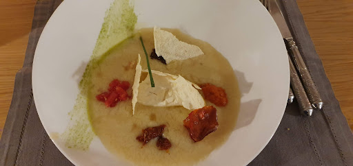 A great place to eat! A warm welcome with refreshing water, a nice amuse bouche and a delicious choice of four different breads. We tried different courses from the menu which we didn't know (e.g. filled courgette, gnocchi with meat stock) and enjoyed them all very much. The chef recommended a certain white wine from the region around Montecarlo and it went very well with our food. (Note: no outside seating is available, but the inside is a must-see (and nicely cooled), so we didn't regret it.) I highly recommend to come and have dinner here, if Pontedera is anywhere...