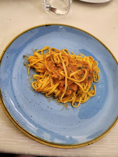 Read moreRistorante di pesce e carne in centro a Pontedera. Il locale non è molto grande ma i tavoli sono ben distanziati e con sedute comode. L'arredamento è un "elegante di altri tempi". Passiamo al menu: premesso che ho mangiato solo pesce posso dire di essere rimasto molto soddisfatto. Sia gli spaghetti allo scoglio che quelli con vongole e bottarga sono risultati molto buoni. La frittura di totani e gamberi croccante ed asciutta. Le porzioni sono normali, sicuramente non scarse ma neanche da abbuffata. Da evidenziare il settore dolci: da provare assolutamente la delizia al limone e, per chi avesse un po' più di spazio, la pastiera napoletana, entrambe deliziose. Una citazione necessaria deve essere fatta per il ragazzo che si occupa del servizio, dispettoso, simpatico e molto efficiente, se potete fatelo...