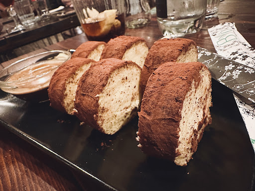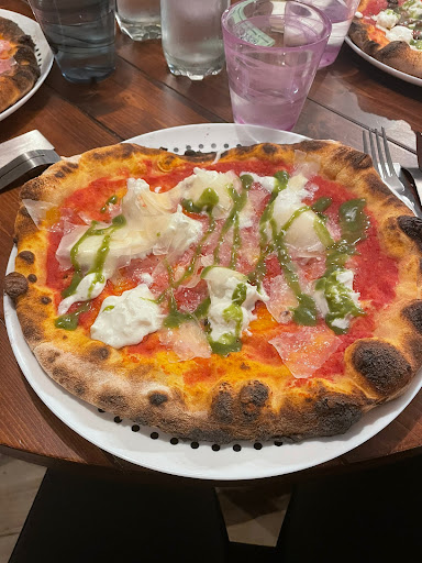 Read moreUn menù molto semplice, basato su poche pizze rosse e poche bianche, e poi una carta dei dolci che vede solo alcune versioni più o meno creative di tiramisù. L’impatto della pizza è ottimo e rustico, fatto con farina tipo1 semi integrale che la rende saporita, croccate (anche se con un bel cornicione) e ben digeribile. I condimenti sono vari e gustosi, che sfruttano ingredienti e sapori ricercati e di grande qualità, presidi dop ecc. Interessante la modalità degustazione offerta ai tavoli che prevede la pizza servita già tagliata in spicchi da condividere con gli altri commensali del tavolo. I tiramisù sono ottimi e creativi. Il classico è ben fatto anche se l’ho trovato poco dolce, gli altri sono da scoprire e lasciarsi stupire. Tutti preparati in diretta davanti a voi dalla pasticcera del locale. Il locale è nuovo, in posizione strategica con tanto parcheggio. I prezzi sono più alti della media, giustificati dalla ricerca di ingredienti di qualità; non viene richiesto il pagamento del coperto ma si fa presto a spendere 25 euro a testa per pizza ,...