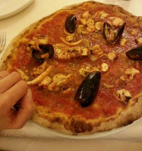 45 minutiti di attesa per 2 e dico 2 spaghetti e io non sono una che mangia molto, ed erano le 7.30 di sera, il locale era ancora vuoto, i calamaretti fritti erano pochissimi, gommosi e palesemente surgelati, gli spaghetti al veliero non sono più quelli di una volta, si sente proprio che il pesce è surgelato, infatti era alquanto insipida, niente da dire sulla pizza, ne ho assaggiata una fetta ed era molto buona, ma tra il ritardo, le cameriere che flirtano con i clienti e ciondolano sperdute portandoti via il piatto non ancora vuoto, ed il fatto che ho cenato mentre tutti avevano già finito non posso che dire di esserene delusa. 7 euro per una pasta che quella oscena surgelata della findus é più buona e...