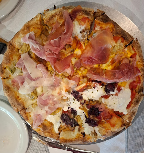 Read morePizza buonissima, sia quella normale che ventilata! La pizza ventilata è una pizza creata con un'attenta selezione di farine e cura nella maturazione. È alta, servita su un tagliere (da due, tre, quattro o cinque persone) e viene farcita con diversi gusti a scelta del cliente. Per tre persone, volendo se ne può prendere una da due (e si possono scegliere comunque tre gusti), ma nel caso se avanza non preoccupatevi ... potete portarla a casa ed è buonissima anche il giorno dopo! Lunedì ho preso la pizza ventilata, buonissima come sempre, nonostante sia gigante risulta sempre leggera. Se volete prendere la ventilata ricordatevi di prenotarla in anticipo (visto il tempo richiesto per la sua elaborazione). La location internamente è normale, un po' rustica e d'estate si può mangiare anche all'esterno, immersi nel verde. La ragazza che ci ha serviti, Asia, è molto carina ed è stata molto brava! Complimenti a tutti! Questo posto è super...