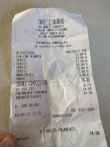 Read moreTavolini con vista sul porto di Ponza, location quindi non male per chi ama il genere, specialmente di sera; di giorno ci sono spesso odori che provengono dalle barche, si può non essere abituati. In ogni caso, il problema è che a fronte di prezzi piuttosto elevati, i cocktail risultano decisamente leggeri, con poco sapore e poco alcool, e a corredo dell'aperitivo arrivano stuzzichini davvero minimi. Capisco che Ponza è Ponza, ma quando i prezzi sono alti ci si aspetta una...