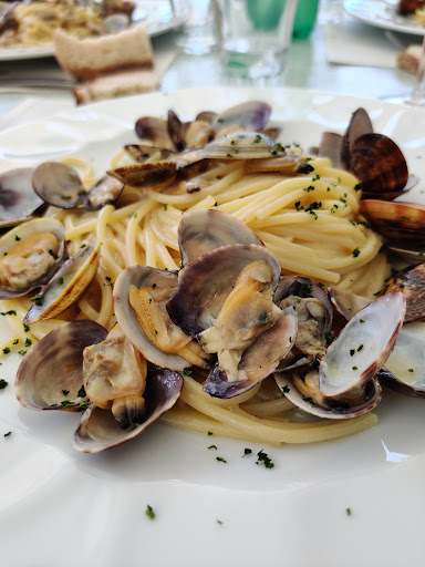Read moreEsperienza pessima! Abbiamo prenotato sabato per domenica alle 12.30, consapevoli del fatto che alle 14,15 ci saremmo dovuti alzare giustamente perché alle 14.30 inizia l’altro turno. Arriviamo ore 12,40.. portano acqua e vari menu, che non abbiamo nemmeno avuto tempo di leggere tranquillamente in quanto il cameriere ci stava mettendo fretta per ordinare , abbiamo ordinato vari antipasti e poi solo primi, (scelti senza pensarci troppo in quanto il “”gentilissimo”” cameriere andava di fretta) A un certo punto gran parte della tavolata stava finendo ancora di mangiare il primo e si avvicina un altro cameriere ancora (che aveva più fretta di quello di prima) alle ore 13.20 (ho controllato l’orologio) per chiedere se avessimo desiderato caffè o dolci. Gli ho fatto presente che ci saremmo dovuti alzare quasi un’ora dopo e non era necessario mettere fretta, in quanto quasi tutti stavano finendo ancora il primo. Gli ho detto anche una frase del tipo “state mettendo ansia per mangiare ma ancora ci manca un’ora prima di doverci alzare” E lui ha risposto “ a me mi sa che l’ansia ce l’hai già di tuo” Io scioccata. L’unico cameriere gentile ieri a pranzo era il bevandiere che parlava poco italiano ma nel suo piccolo è stato gentilissimo e molto sorridente! 🥰 DOPO AVER FINITO TUTTI IL PRIMO abbiamo ordinato caffè e vari amari visto la loro fretta. Subito dopo l’amaro ci è stato portato il conto (senza che nessuno l’avesse chiesto) alle 13.50, abbiamo pagato, ordinato altri amari dopo il conto, e alle 13,55 (subito dopo aver pagato) ci è stato chiesto di lasciare il tavolo perché il cameriere avrebbe dovuto iniziare ad apparecchiare per il turno dopo! Quando..sinceramente, dopo aver pagato 360€ di pranzo quei 15 minuti in più saremmo potuti benissimo rimanere a chiacchierare ancora un po’ ( perché da accordo ci saremmo dovuti alzare alle 14,15) Se volete continuare a lavorare vi consiglio di rivedere il vostro staff! Per quanto riguarda il pranzo io ho mangiato un primo di pasta con il pomodoro e basilico ed era buona! Peccato...