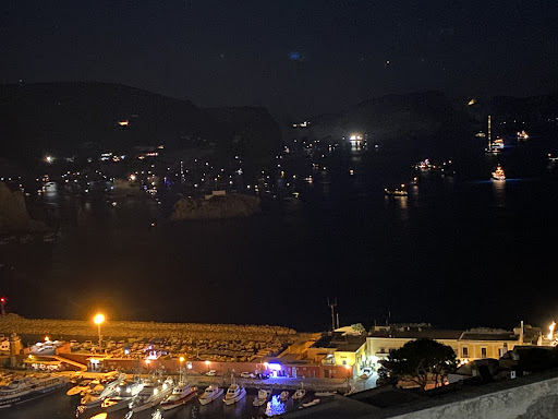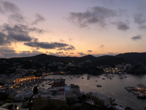 Read moreHo trascorso 4 giorni a Ponza un paio di settimane fa, in compagnia di amici e per 2 sere abbiamo cenato quì...per tornarci la seconda volta, su 4 sere, un motivo ci sarà?!?! Inizio col dire, che il ristorante ci è stato consigliato dal signor Silverio, persona gentilissima, figlio della proprietaria, il quale gestisce un noleggio di barche giù al porto, "NOLEGGIO ARCOBALENO", che consiglio vivamente a tutti, che per 2 giorni ci ha fatto girare l'isola con una bella barca grande, guidata da un capitano molto esperto, che salutiamo calorosamente, Vittoriano. Tornando a parlare del ristorante, a Silverio abbiamo specificato, che essendo di Taranto, conosciamo abbastanza bene il pesce e quindi eravamo parecchio esigenti...ci ha detto di stare tranquilli...abbiamo mangiato benissimo...una zuppa ottima ed abbondante la prima sera e tanto pesce alla griglia insieme a della frittura mista la seconda. Il personale poi, molto cordiale, in particolare Anna (Chantal per gli amici...ahahah). Tutto questo su un terrazzo con panorama mozzafiato sull'intero porto di Ponza...forse è la casa posta più in alto dell'isola. Difficile, ma non impossibile, raggiungere a piedi, ma tanto offrono un servizio navetta, da qualsiasi punto dell'isola, sino al ristorante. Bello poi, scendere dopo cena a piedi sino al porto, attraversando tante piccole stradine, assaporando quella che è la vita degli abitanti dell'isola. Se torniamo a Ponza, una capatina sin quì sopra, non ce la...