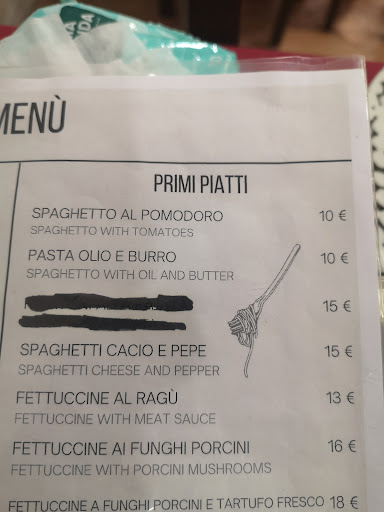 Read moreHo richiesto un piatto tipico presente nel menù "spaghetti cacio e pepe" erano tutto tranne quello che mi aspettavo! Praticamente nuotavano nell'olio, mi aspettavo la tipica cremina di cacio un po' scura per il pepe invece c'era una spolverata di parmigiano con in cima il pepe. Per quanto riguarda li prezzo indicato da qualcuno da 10 a 20€ forse ha preso un antipasto quello più economico l'acqua ed il coperto. 15 € per degli spaghetti all'olio mi è sembrato eccessivo per una struttura così (sarei anche stato contento se fosse stata una cacio e pepe, la faccio meglio io a casa!). 4 pezzettini di abbacchio ma proprio in, 18€ totale compreso mezzo acqua 40€. Avevo chiesto il caffè ma non l'anno portato. Niente da dire sulla simpatia del proprietari (un po' maschilista ma ognuno è padrone delle proprie idee), era cominciata bene dalla simpatia e dalla disponibilità ma è finita malissimo. Tutte persone di passaggio come me che probabilmente non ci torneranno...