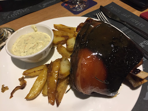 Read moreIeri a pranzo questo ristopub/osteria ci ha regalato un desinare tranquillo e piacevole. I piatti, preparati con cura sono stati:olive ascolane, molto buone, se erano confezionate allora la scelta del fornitore è azzeccata, le patate fritte, ahimè con taglio di moda, erano bui e ma purtroppo troppo pesanti... Olio troppo usato? I piatti cche abbiamo scelto sono stati:bresaola con scaglie di grana e rucola, di loro produzione, veramente ottima e carne salada con formaggio al tartufo, splendida! Abbiamo assaggiato dei vini al calice:Etna rosso, lodevole e un pinot noir, forse tedesco, per nulla buono. Il personale è stato gentile e disponibile. Mi dispiace non aver potuto scegliere al calice un altro vino ma capisco che non possano aprire bottiglie ogni volta che qualcuno chiede. Infine un punto negativo che fa perdere una stella, quando siamo arrivati al conto:52 euro, non proprio, proprio economico, la cassiera ci ha fatto pagare 2 bustine di ketchup🙄dico, in un locale dove si servono patate fritte e hamburger è possibile far pagare due Micro bustine di ketchup? Visto il conto direi che potevano anche essere comprese nelle patate. Se ricapiteró da quelle parti penso che mi fermerò cmq ma quella volta niente patate e...