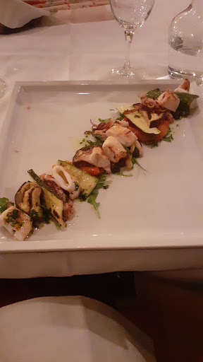 Ho iniziato con un antipasto di crudo di Parma di ottima qualità. Come primo piatto ho scelto un risotto al nero di seppia, mantecato a regola d'arte dal sapore intenso e deciso. Per il secondo piatto ho optato per dello spada alla griglia accompagnato da verdurine croccanti. Piatto gustoso!