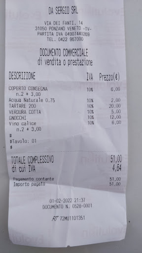 La Trattoria da Sergio è un ristorante che consiglio vivamente a tutti coloro che vogliono gustare una cucina di alta qualità in un ambiente accogliente...