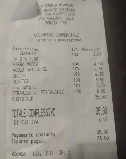 Pizzeria ubicata a Porcia in un posto in cui è facile trovare parcheggio. La pizzeria ha un arredamento molto particolare, colorato e davvero moderno. Il personale è composto da ragazze giovani che sono molto cordiali, simpatiche e con il sorriso sempre sulle labbra. Il servizi è stato veloce e gradevole. Ho ordinato una pizza particolare e un piccolo antipasto. Sono rimasta abbastanza soddisfatta dell' abbondanza dei condimenti e della grandezza della pizza ma l'impasto è risultato abbastanza pesante e il mio stomaco ne ha risentito. Sicuramente ci tornerò a provare un'altra pizza, ma purtroppo se mi ha fatto già quest'effetto una volta sicuramente si riproporrà puntoacapo vorrei avere però l'occasione di provare o una baguette o l'insalata e soprattutto il dolce. Appunto molto importante: c'è una pizza all'interno del menu che si chiama "Pugliese" e come ingredienti ha la cipolla di Tropea... Questo è un errore che da vera pugliese non posso far passare...