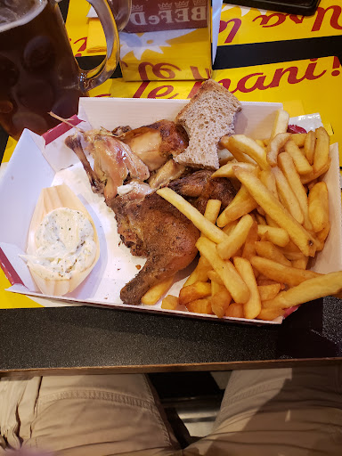 Read moreChe delusione!!! Aprire la scatola dell'asporto e trovarvi delle patatine fredde e mollicce, e un galletto mezzo carbonizzato ... Obiettivamente, tolte le parti bruciate, la carne era tenera, piccante al punto giusto, saporita, ma il costo, ahimè, eccessivamente caro per un galletto le cui parti bruciate sono state "goffamente" nascoste da una fetta di pane che neanche lontanamente ha mai visto la tostatura.... Che dire poi della birra??? Quella che serviva a riempire le due bottiglie da asporto, è finita su di me inzuppandomi i vestiti, mentre quella rimasta era sgasata e per nulla fresca, servita da personale inesperto, incapace e incompetente. Non lo consiglio... Anzi, invito caldamente a non metterci più...