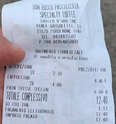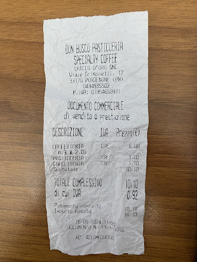 Read moreNuova gestione delusione. Verso le 11 per caffè e brioche. Banco praticamente vuoto. Chiediamo se possibile avere brioche alla crema e marmellata, rispondono che “guardano”. La commessa torna con due brioche dal retro servite sul vassoietto di carta per l’asporto… Vabbè. Fossero state buone si poteva sorvolare… Ordiniamo due caffè e un deca. Non hanno deca perché il loro caffè “è a basso contenuto di caffeina”. E vabbè, prendiamo questo caffè. La ragazza bionda alla macchina del caffè (la titolare?) descrive le qualità di questo caffè etiope, che dice essere acidulo naturalmente. No, non di nostro gusto. Conto: 10,10€ per 3 caffè, due bioche e un mignon consumati in piedi!!! Il caffè 2€!! Dico che il caffè decisamente non mi è piaciuto e chiedo perché non ne tengono di normale… Mi risponde che hanno anche quello normale! Trovo decisamente scorretto non aver comunicato il costo decisamente più alto e la possibilità comunque di bere un espresso normale prima dell’ordinazione. Peccato, mai più. La pasticceria Don Bosco rimarrà un ricordo della...