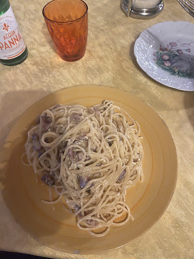 Read moreMi ha delusa. Ci sono stata a cena per la prima volta per festeggiare il mio compleanno e devo dire che il servizio è piuttosto scadente, in quanto non esiste un menù alla carta, ma il titolare elenca le portate e spinge a far scegliere quello che lui preferisce. I tavoli vengono apparecchiati in modo piuttosto grossolano partendo dalle posate che vengono portate su un piatto piano sopra i tovaglioli di carta uniti a due pacchettini di grissini e un cestino con del pane che sa solo lui di quando è. I bicchieri che riportavano inciso proprio l'anno 1912,infatti erano talmente consumati che non sapevo se fidarmi a bere. Le porzioni secondo me sono esagerate e poco saporite. Il dolce praticamente mi è stato imposto, perché ho dovuto chiedere se ce ne fossero di altri . Io e mia figlia ci siamo sentite per tutto il tempo con gli occhi addosso perché non faceva che fissare il nostro tavolo. Per due piatti di pasta,due tiramisù e due lattine da 33cl di coca cola ho speso 40€ e senza avere nemmeno uno scontrino con la specifica di quanto consumato ma solo quello del pos ,questo perché non ho pagato...