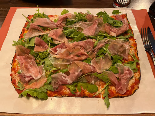 Mi sono fermata in questo locale vicinissimo all’autostrada incuriosita dalle recensioni contrastanti sulla loro “pizza”. Uso le virgolette perché non è una pizza nel senso tradizionale del termine, ma più una specie di spianata farcita, la cui base però non è di certo fatta al momento. Da amante della pizza napoletana con cornicione non fa per me ma non mi sento di sconsigliarla, basta essere consci di quello che vi arriverà, che no, non è una pizza e no, non è “gourmet” (per quelle, gli ingredienti e soprattutto gli abbinamenti sono ben più ricercati e studiati, e lo dico da persona che ha girato tantissimi locali in giro per l’Italia… la differenza è abissale). Fritto da evitare, pastella e frittura troppo troppo pesanti (è la prima volta che lascio avanzi, ma davvero non meritava).