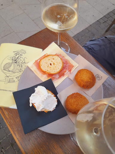 Read moreSe volete mangiare un ottimo crostino con ingredienti ricercati e bere un buon calice di vino o birra, questo è il posto ideale. Tutto in stile antico, sembra di entrare in una vecchia cicchetteria Veneziana. Non è molto grande e con poche persone si riempie. Pochi tavoli a disposizione. Solitamente gli avventori fanno ritrovo all'esterno del locale, nello stretto vicolo dove si trova. Cosa che tende l'atmosfera ancora più...