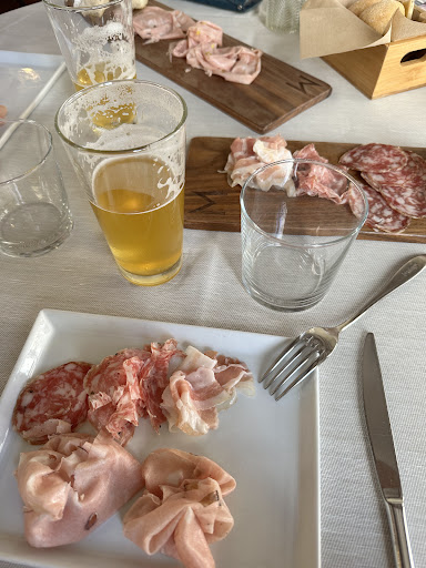 Read moreSono qui a Pordenone con il "capo" che dovevamo prenderci dei mezzi aziendali da portarci a casa e ovviamente mi intrometto nel scegliere il posto di dove mangiate pranzo. Scelgo la prosciutteria perché a naso mi ispira un sacco al di là delle recensioni e le molte stelle attribuite. Ci accoglie un cameriere di nome Denis, carinissimo! Un sorriso smagliante, molto gentile ci fa accomodare e accoglie nel migliore dei modi. Ordiniamo un piatto di due prosciutti crudi uno di 24 mesi e uno 18.. esageratamente buoni! Come 0rima delle tagliatelle fresche fatte in casa con prosciutto san Daniele condita con spuma di parmigiano e panna...indescrivibile il sapore un qualcosa di superbo!!! Tutto questo accompagnato da un ottimo refosco.. Infine mousse di pistacchio lampone e foglia di decorazione al cioccolato bianco...non descrivo più perché bastano le foto che parlano da sole..complimenti per la qualità del cibo e per il cameriere che é unico nella sua professionalità gentilezza e "savoirfaire". Se dovessi ricapitare da queste parti non...