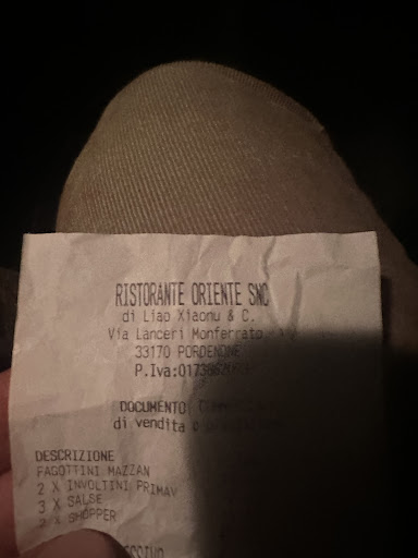 Oriente si presenta come un locale modesto, uscito vittorioso dal "boom novità" dei ristoranti cinesi degli anni 90' di cui peraltro mantiene immutata l'estetica. Passato indenne attraverso la più recente invasione di locali "Asian Fusion" e "all-you-can-eat", si riconferma, forse proprio grazie alla sua rassicurante classicità, un caposaldo della cucina etnica Pordenonese.