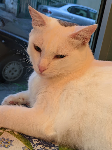 Secondly, the cats seem very well cared for and are obviously loved by the owners. When they are in the mood they will sit on your lap (the cats, not the owners) and when they are not in the mood they will saunter off with a supercilious air. Well, they are cats. They have their reputation to think of.