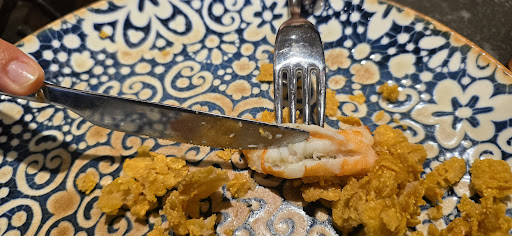 Siamo stati a cena in questo ristorante di mare, mi era stato consigliato da un caro amico, già l'accoglienza non mi ha dato buone sensazioni. La ragazza che gestisce la sala mi ha chiesto perché fossimo andati lì visto che era vicino casa e in genere uno va altrove, ma l'ho trovata insolita come domanda, soprattutto da fare ad un cliente nuovo, la mia risposta è stata "perché me ne hanno parlato bene". Lei ha consigliato un primo con la granseola, dicendo che era buonissimo, ed io invece ho preso gamberi impanati e tonno. Mentre aspettavamo la coppia seduta davanti ha chiesto se c'era una cosa in particolare, ma mi ha sorpreso la risposta della stessa ragazza che ha detto" il mare non è un supermercato ", credo non si risponda così. Comunque arriva il mio antipasto, gamberi impanati con corn flakes e stranamente arriva subito, unti, panatura doppia ma nonostante questo il gambero non caldo dentro e cosa che non mi aspettavo affatto...con il suo intestino! Ora mi chiedo: voi che vi fate tanta pubblicità e poi all'interno di una panatura doppia e unta nascondete l'intestino? Si rimuove. È inaccettabile. Oltre che sembrava un piatto di street food con banale salsina accanto. Poi arriva il tonno, purtroppo era troppo crudo, ma questo è un fatto di gusto, lo faccio cuocere di più ma non era quello il punto, aveva un sapore strano, così come la granseola, fresca sicuramente, ma cucinata male, senza sapore e senza amore, la pasta era durissima. Quindi vista la situazione non abbiamo proseguito, ho fatto presente ciò che ho scritto alla ragazza, soprattutto per i gamberi, ma non mi è stato detto nulla, tranne un sorriso. Sono molto dispiaciuta di dover fare tale recensione, ma mi sono intossicata, appena tornata a casa nausea e quel tonno indigesto tutta la notte, bocca amara e asciutta. Mai più, forse non è il prodotto ma è il modo in cui cucinano. Quindi sconsiglio questo ristorante, potrebbe fare molto meglio visto il menù vario....