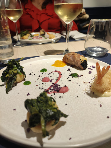 Read moreSono stata in questo ristorante scelto da amici. Locale non troppo grande ma arredato con gusto e molto minimale. Scelgo la degustazione di antipasti, sorprendente. Vi erano 7 assaggini cucinati molto bene, ricordo un peperone ripieno con una crosticina saporita, un gambero con pasta kataifi abbinati ad una mayo delicata, un cannolo con baccalà mantecato, sorprendente. Come primo ho scelto dei ravioli con manzetta che si scioglievano in bocca, ho anche provato il loro fuori menù, genovese di mare, si sentivano tutti i sapori, buono. Concludiamo con la degustazione di dolci e che ve lo dico a fare. Dal tiramisù con la meringa alla mousse al cioccolato tutto buono, ho assaporato ogni singolo boccone. Qualità eccellente e...